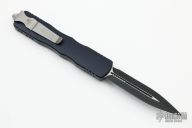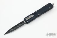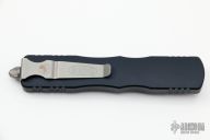 This Dirac Delta OTF automatic by Microtech features a D/E black blade with a standard edges. The handle is black aluminum with stainless steel tip down clip and blasted hardware. Serial number 094 and dated 07/2019. Has a light scuff on the frame, otherwise excellent condition.