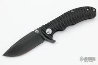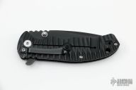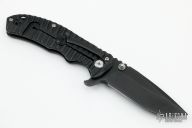 This Tango II Framelock Flipper by Tim Britton has a black finished blade with dual thumbstuds, notched thumbrest, and flipper. The handle has a contoured titanium frame with tip up/down reversible clip, lockbar stabilizer, titanium barrel spacers, and lanyard hole. Comes with a zippered case. Excellent condition.