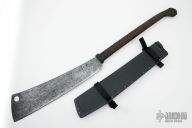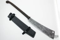 This Hog Splitter by James Helm features a hand forged clip point upswept blade with .24" blade stock and 4.5" blade depth, hidden tang construction. The handle has hemp wrap. Comes with a kydex sheath. New from Maker at the Texas Blade Show 2022.