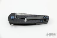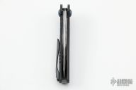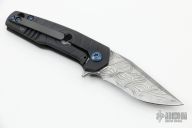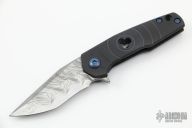 This Ronin Covert by Jim Burke features a heavy acid etch finish Nichols Armour Core Damascus blade with flipper. The handle has a black finish milled titanium frame, orange peel Zirconium finish tip up clip and backspacer. Rides on bearings, nice detent, lockup and blade seating. New from Maker!