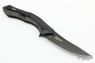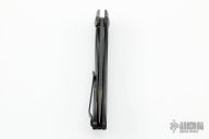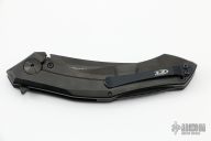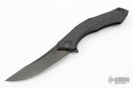 This 0462 Sinkevich Design flipper by Zero Tolerance features a black upswept blade with flipper and swedge. The handle has a carbon fiber and black titanium frame, black aluminum backspacer and a tip up reversible titanium clip. Nice detent, lockup and blade seating, rides on bearings. Has stainless steel lockface insert and overtravel stop, ceramic detent ball. S/N 0284. Excellent condition. Comes with original box and papers.