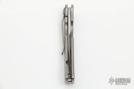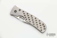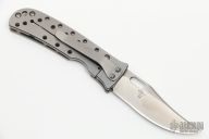This Buck/Mayo Waimea Framelock Folder collaboration has a satin finished S30V stainless steel clip point blade with thumbhole. Paul Bos heat treated blade. Frame is bead blasted titanium with milled holes, bead blasted titanium tip down clip, and lanyard hole. Excellent condition. Comes with original box.