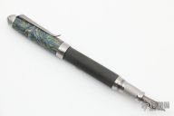Solid engraved Titanium with Uni Carbon Fiber body overlay, with CrazyFiber cap overlay. Roller Ball Pen. New from maker. Titanium medium nib, cartridge/converter fill