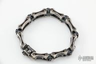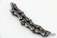 This sterling silver Axe link bracelet with skulls by Steel Flame is 8.75" in length. Has some light scratches, otherwise excellent condition.