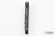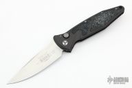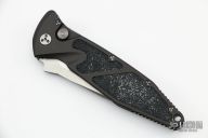 This Mini Socom Elite by Microtech has a satin finish clip point blade with a plain edge. The handle is composed of a black aluminum with non-slip inserts. Dated 01/2004. Stainless steel tip up pocket clip. Includes original sheath, tube and papers. Has scuffs and scratches, great condition otherwise.