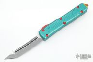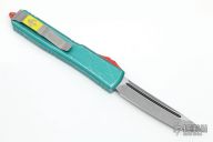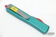 This Star Wars themed Ultratech by Microtech knives features a standard tanto blade with fullers and apocalyptic finish. The handle has a green battle worn aluminum frame with red and yellow hardware. Comes with original box and papers. Dated 04/2022 and s/n 5592. Excellent condition.