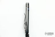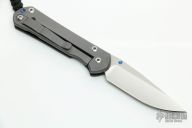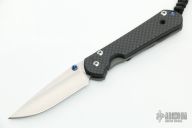 This Small Sebenza 21 by Chris Reeve Knives features a tumble finished drop point style blade with notched thumb rest and single anodized titanium thumb stud. The handle is comprised of a carbon fiber and bead blasted titanium frame with matching tip up clip over a single anodized barrel spacer and lanyard pin. Comes with original box and papers dated September 30, 2014. Has some scuffs on the frame, otherwise excellent condition. This knife was a Knife Art Exclusive.