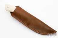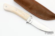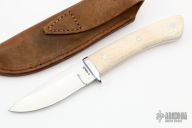 This Hunter by Manley has a mirror polished blade with notched thumbrest, .110" blade stock and 1.056" depth, full tang construction. The handle has a stainless steel guard with bone scales. Comes with a brown leather sheath. Dated '06 and #4898. Excellent condition.