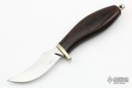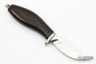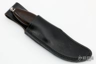 This knife from Colt features mirror polished blade with .275" blade stock and .946" blade depth, hidden tang construction. The handle has a nickel silver guard with a dymondwood grip with a tang nut with lanyard hole. Comes with a black leather sheath. Has a few light scratches, otherwise excellent condition.