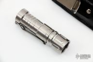 This LS20 Titanium flashlight by McGizmo features full titanium construction, with pocket clip. Has some light scratches, great condition otherwise. Comes with a shark hide "holester" by AotH.