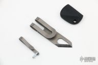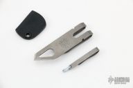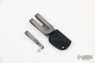 This Mega Dangler from Munroe is composed of stonewash titanium, and has a kydex sheath. Comes with matching DTS. Includes Maker's card. Excellent condition.