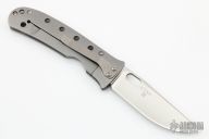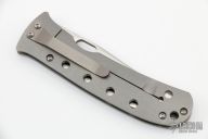 This TNT Framelock is a Tom Mayo design executed by Buck Knives. It features a satin finished drop point blade with thumbhole. The handle hasa drilled titanium frame over titanium standoffs. Titanium tip down clip and lanyard hole in pommel.  Includes the original box.  Excellent Condition.