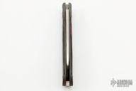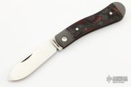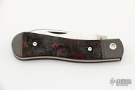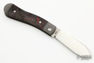 This K9 Jack (Dog Leg) slipjoint model by Jack Wolf Knives featuring a satin finished drop point blade with nailnick. The handle has integral bead blast finish pinched and fluted titanium front and rear bolsters and liners, Fat Carbon scales with a stainless spring. Comes with box, metallic tube with Sean Tiffany artwork, leather slip, sticker and microfiber cleaning cloth. New from Maker.