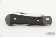 This K9 Jack (Dog Leg) slipjoint model by Jack Wolf Knives featuring a satin finished drop point blade with nailnick. The handle has integral bead blast finish pinched and fluted titanium front and rear bolsters and liners, Carbon Fiber scales with a stainless spring. Comes with box, metallic tube with Sean Tiffany artwork, leather slip, sticker and microfiber cleaning cloth. New from Maker.