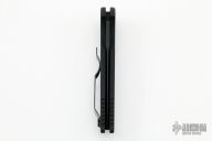 This TR-3 X1 by Pro-Tech Knives features a black spear point blade. The handle has a black aluminum handle with stainless steel backspacer with lanyard hole, tip up blade stainless steel clip.  There is a tritium insert in the push button. Includes the original box and papers. Excellent condition.