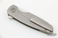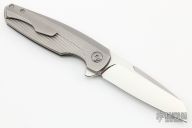 This Haptic by Holt Bladeworks features a tumble finished blade with a notched thumbrest and flipper tab. The handle features a milled titanium frame with a matte finished titanium tip up pocket clip and matching hardware. Nice detent, lock up and blade seating. Includes the original tools and papers. Excellent Condition.  #939