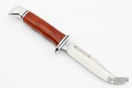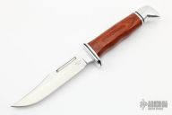 This Model 117 Brahma by Buck Knives features a satin finished clip point blade with false top edge and fullers, .118" blade stock and .787" blade depth, hidden tang construction. The handle has an aluminum guard and butt, and a Cocobolo grip. Comes with original black leather sheath and original box. 1 of 500. Excellent condition.