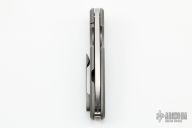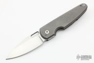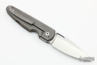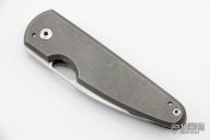 This Phase by James Brad Blount features a satin finished blade with a thumb hole. The handle is comprised of a tumbled titanium frame with a matching tip up clip, has lanyard pin. Nice blade seating, detent and lock up. Has a few light scratches, otherwise excellent condition. Comes with zippered case. #4 inside frame.