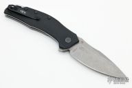 This 0357 by Zero Tolerance has a stonewashed blade with notched thumbrest and flipper. The ZT 0357 is a premium knife designed for long, hard use. It's got a textured G-10 handle that allows a secure grip, and a long, broad CPM-20CV blade that is tough and will hold its edge. It runs on patented SpeedSafe assisted opening technology, so it will open every time without fail. S/N 4169. Comes with original box and paper. Excellent condition.