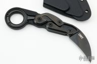 The CRKT Provoke is a Joe Caswell designed folding karambit that offers tactical ingenuity, with the first ever Kinematic forward opening blade. This unique feature allows for safe carry and rapid deployment without changing your grip on the handle. A low profile pocket clip rests flush with the handle while knife is in use for improved ergonomics. Experience tactical innovation with the CRKT Provoke Morphing Karambit from Joe Caswell. Features: Kinematic mechanism opens and locks the blade from the tip of the handle for rapid manual blade deployment. Hawkbill style blade made from tough and durable D2 steel in a black Ti nitride coating. Stainless steel pocket clip rests flush with the handle minimizing hot spots. Excellent condition. Comes with original box, kydex sheath and papers.