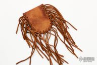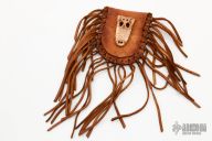 Buckskin leather pocket pouch with milled and hand carved naturally-shed moose antler decoration as a tiny alligator skull. While it is designed to carried wired audio earbuds, the tiny pouch will be a notable and handy means of carrying and protecting any small item in your pocket! The owner can easily trim the fringe to any desired length. Comes with COA, new from maker.