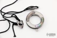 This MK-14 Vicious Circle is a Grant and Gavin Hawk design by Mantis Knives. It is circular pendant that deploys a curved blade when detached from the lanyard. Satin finish with abalone inlays. Includes original box and paperwork. Excellent condition.