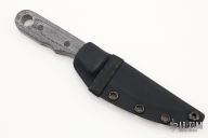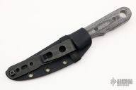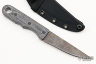 This Knife by John Gray features an anodized titanium blade with .035" blade stock and .950" blade depth, full tang construction. The handle has blue Terotuff micarta scales with black canvas micarta pins and a large lanyard hole. Comes with a kydex sheath. Excellent condition.