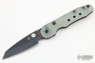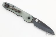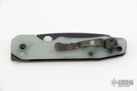 This Smock by Spyderco has a black sheepsfoot style blade. The handle features natural G-10 scales over black stainless steel liners with a reversible stainless steel pocket tip up pocket clip. Comes with original box and paperwork. Excellent condition.