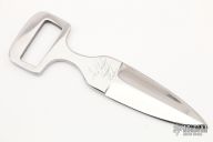 This Push Dagger by Rod Chappel features a mirror polished double edged blade with .188" blade stock and 1.190" blade depth, full tang construction. The handle features a mirror polished skeletonized grip. Has some scratches, otherwise good condition. Dated January 1973.