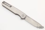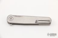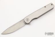 The Rockwall by Tactile Knife features a stonewashed blade with notched thumbrest and flipper. The handle has a milled titanium frame with a tip up stainless steel clip and backspacer. Excellent condition.