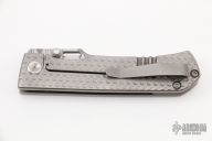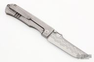 This D.O.C.K. flipper by Dmitriy Osarenko features a San-Mai with dual thumbstuds. The handle has a milled titanium frame with a matching tip up pocket clip.  Nice detent, lock up and blade seating.  Includes the original hard case and COA. Dated 03-22.  Excellent Condition.