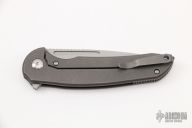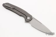 This Stinger by Ferrum Forge features a bead blasted drop point blade. The handle has a titanium frame with a tip up steel pocket clip. Nice detent, lock up and blade seating. Includes the original box and papers. Excellent Condition.