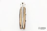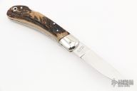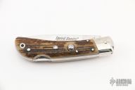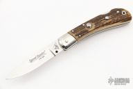 This Speed Hunter has a satin blade, high polish nickel silver bolsters, and stag scales. Well made with quick strong action. Slide safety switch. Has a few light scratches, otherwise excellent condition.