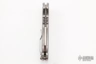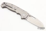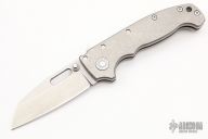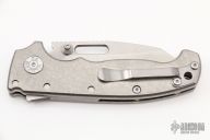 This AD20S by Andrew Demko features a stonewashed shark foot blade with notched thumbrest and dual thumbstuds.   The handle has a stonewashed titanium frame with a tip up stainless steel clip and "Shark" lock release on the spine. Comes with original box. New condition.