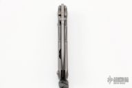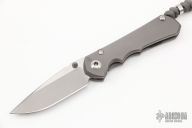 This Small Inkosi from Chris Reeve Knives features a two-tone finished drop point S45VN blade with dual anodized thumb studs and notched thumbrest. The handle is comprised of a glass blasted titanium frame over a single barrel spacer with a matching bead blasted titanium tip up clip. Includes original box, paperwork and accessories. Excellent condition. Maker's card dated December 17, 2020.
