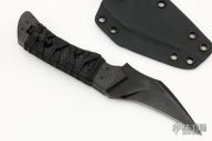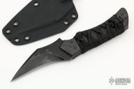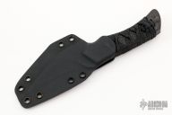 The Chimera by Ironside Edge Works features a black Bohler K460 Steel blade with .194" blade stock and 1.172" blade depth, full tang construction. The handle has carbon fiber bolsters, black cord wrap over stingray skin scales.  Includes a kydex sheath and COA dated 12-22-20 and s/n CH013. Has some sheath scuffs, otherwise excellent condition.