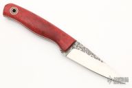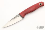 This Shank by Fiddleback Forge features a drop point blade with .128" blade Stock, 1.065" blade depth, full tang construction. The handle has has dyed mango wood scales, black G-10 and brown canvas micarta liners, brown canvas micarta pines and a lanyard tube. Comes with original box and papers. Excellent condition.