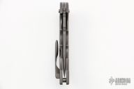 This Little Homie #3 by Jeff VanderMeulen has a dark stonewashed multi-ground blade with notched thumbrest and flipper.  The handle has a stonewash finished titanium frame and tip up clip with hidden screws. Comes with a zippered case and COA. New from maker at the 2022 USN Gathering.