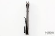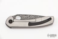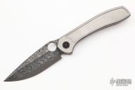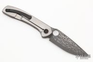 This Sabre Integral by Maverick Concepts features a Mike Norris Damascus blade with thumbhole. The handle has a bead blasted and milled integral titanium frame with black tip up titanium clip, black titanium pivot screw. Comes with a COA dated 8/308/22 and original case. New from maker at the 2022 USN Gathering.