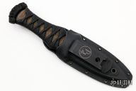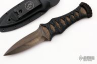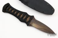 This Dagger by Tracker Dan features a double-edged blade with .222" blade stock and 1.011" blade depth. The handle has black cord Para cord wrap and a hemp cord under wrap. Comes with a kydex sheath with belt clip and the knife will fit in either direction. Excellent condition.