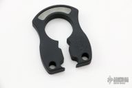 This keeper by John Gray is made from aluminum and has been cerakoted black and has glow in the dark inlays. Has a bottle opener and holes for a key ring. Can be hung from a belt loop. Can also be used as a knuckle. New from maker at the 2022 USN Gathering. This one's pronouns are "He/Him".