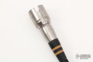 This One Off Footman's Mace by Patrick Ober features a titanium head with brass spacer and titanium end cap. The handle is black linen micarta with an internal grade 8 threaded rod connecting the head and the end cap. New from maker at the 2022 USN Gathering.