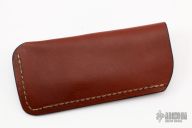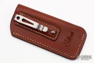 This brown leather sheath by SoulBound Leather is made from premium full grain English Bridle Leather from Wickett & Craig and has a stainless steel pocket clip. New from maker at the 2022 USN Gathering. 4.75" tall and 2" wide.