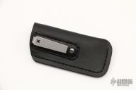 This black leather sheath by SoulBound Leather is made from premium full grain English Bridle Leather from Wickett & Craig and has a stainless steel pocket clip. New from maker at the 2022 USN Gathering. 3.5" tall and 1.5" wide.