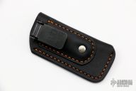 This Black leather sheath by SoulBound Leather is made from premium full grain English Bridle Leather from Wickett & Craig and has an Ulti-clip. New from maker at the 2022 USN Gathering. 3.5" tall and 1.5" wide.