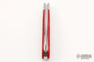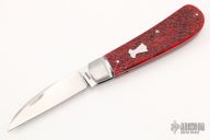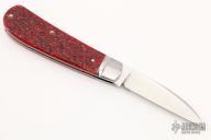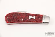 This Swayback by Mike Zscherny features a hand rubbed satin finish and nail nick. The handle has a fluted stainless steel bolsters and escutcheon, red jigged bone covers, stainless steel liners and springs. Half stop on blade, flush in all positions. Excellent Condition.
