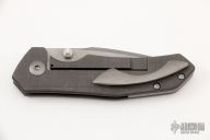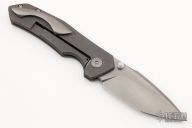 This MAC Sonic Doom by Brian Efros features a bead blast finish Magnacut blade with dual thumbstuds. The handle has a milled, tumble, and blasted finish titanium frame and a bead blasted tip up clip with hidden screws. Rides on bearings, nice detent, lockup and blade seating. Comes with zipper case. Excellent condition.