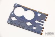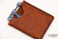 This titanium Crisis Card by Mike Snody has a chisel ground blade and milled frame. Comes with COA dated 2009 and brown leather sheath. Excellent condition.