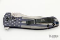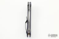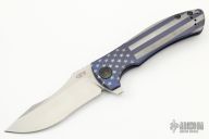 This 0920 Les George Design Flipper by Zero Tolerance features a stonewashed clip point recurve blade with notched thumbrest and flipper. The handle has a milled and laser engraved titanium frame with black pivot and tip up reversible clip, bronzed barrel spacers. S/N 2573. Has some scuffs, otherwise good condition. Comes with original box and papers.