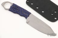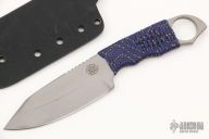 This knife features a clip point bead blast blade with notched thumbrest, .146" blade stock and .117" blade depth, full tang construction. The handle has a wrapped handle and extended tang with ring. Comes with a kydex sheath. Has a few light scuffs on the blade. Great condition.